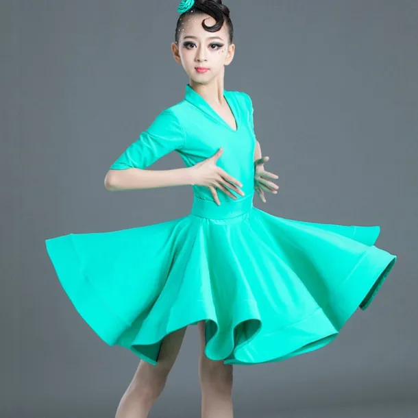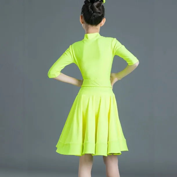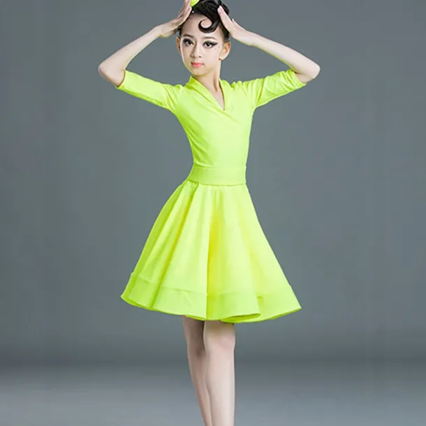 Latin Dance Kids’ Dancewear Dress Pure Color Splicing Girls’ Performance Training Half Sleeve High Polyester