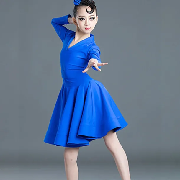 Latin Dance Kids’ Dancewear Dress Pure Color Splicing Girls’ Performance Training Long Sleeve High Polyester