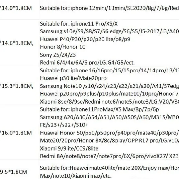 | Size | Up to 4.7 inch, Up to 5.8 inch, Up to 6.1 inch, Up to 6.5 inch, Up to 7.2 inch |
