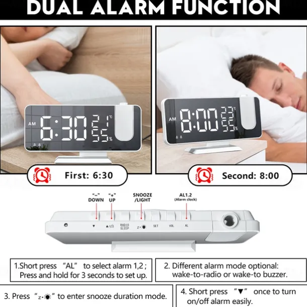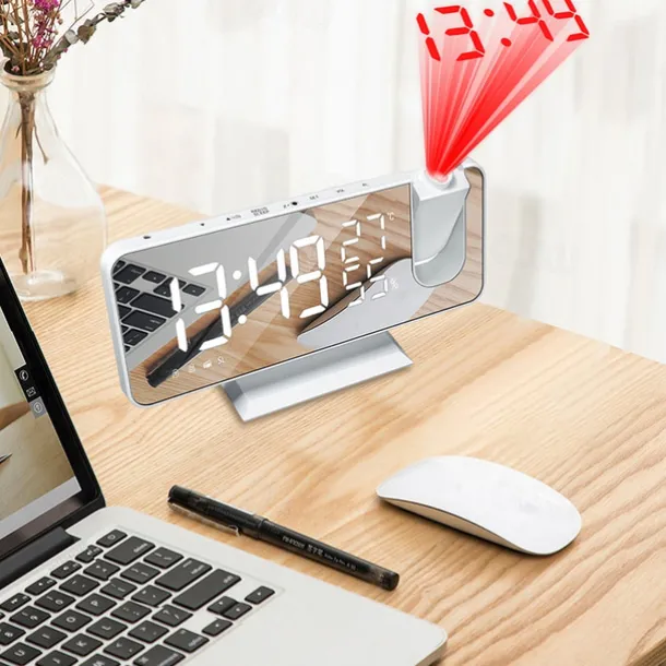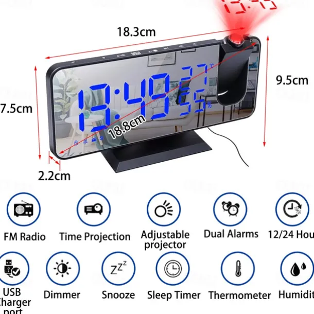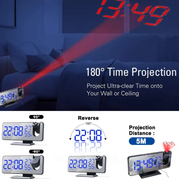 LED Digital Projection Alarm Clock Electronic Alarm Clock with Projection FM Radio Time Projector Bedroom Bedside Mute Clock