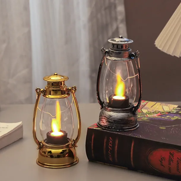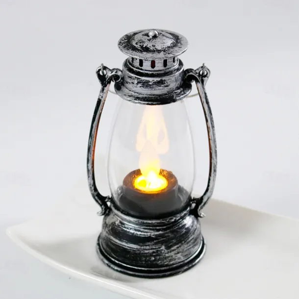 LED Electronic Horse Light Candle Light Retro Small Oil Lamp Electronic Candle Light Creative Nostalgic Wind Light Desktop Ornament Small Night Light Festival Party Decorative Lights 1PC