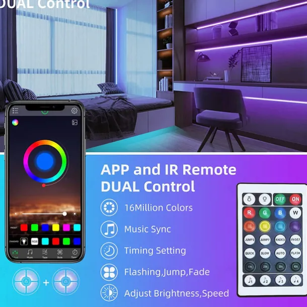 LED Light Strip 15m/20m 50ft 65.6ft RGB Color Change LED Light Strip Kit with IR44 Key Remote Control for Bedroom Lighting Flexible Home Decoration