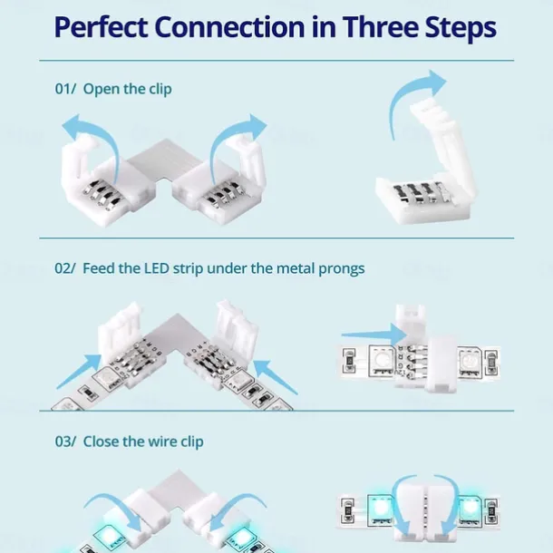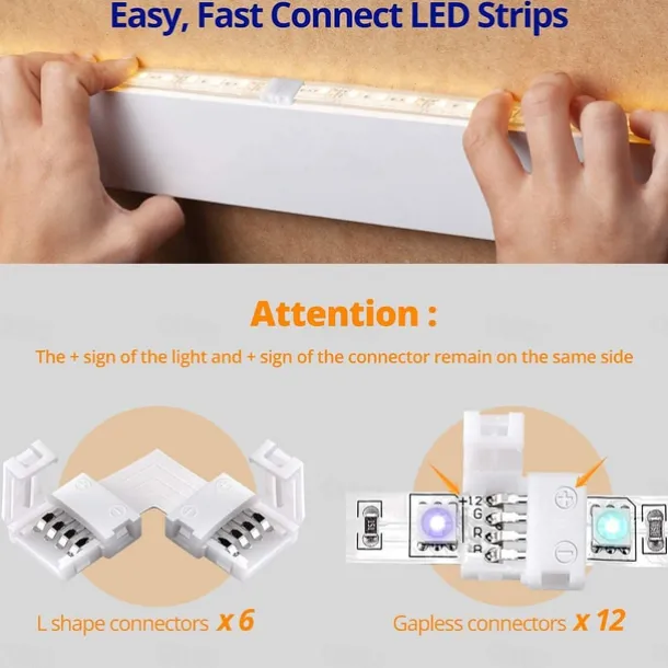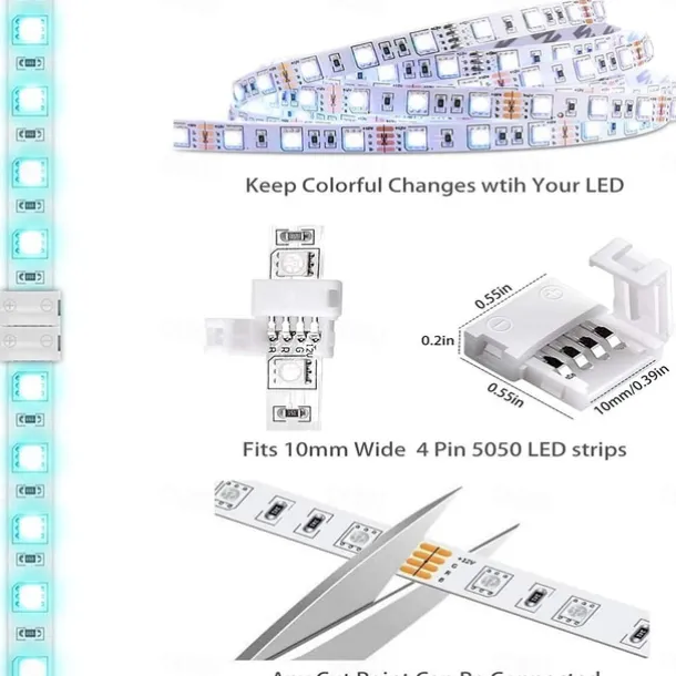 LED Light Strip Connectors 10mm Unwired 4 Pin RGB LED Lights Connectors kit 12 Gapless Connectors 6 L Shape Connectors for SMD 5050 Multicolor LED Strip 5V-24V