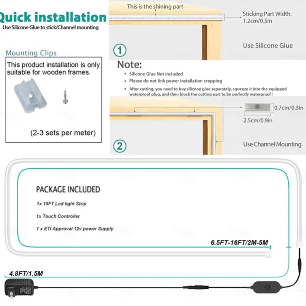 LED Beads Quantity: 240-600, Light Color: Warm White, Cold White, Power Supply: Plug, Type: Neon Strip Lights, Style: LED Strip Light, Creative String Lights, Features: Holiday, Waterproof, Creative, Quantity: 1 set, Wattage (W): 24, Voltage (V): 12, Length: 2m, 4m, 5m, 3m, Mode: Button Control, CRI: >70, LED Type: Flexible Neon, Batteries Included: No, IP Rating: IP65, Suitable Rooms: Indoor, Outdoor, Width: 6mm, Length Range: < 5m (16.4ft), Occasion: Wedding, Outdoor, Indoor, Window / Curtain / Wall, Control Mode: Button, What’s in the box: 1Set Mounting Bracket, 1 x On-line Dimmer Dwitch, 1 x 2A power adapter,