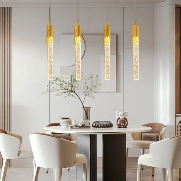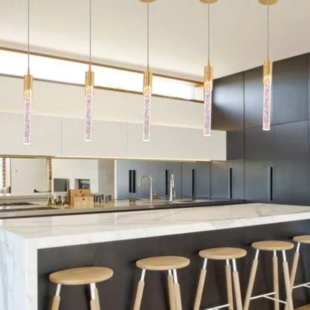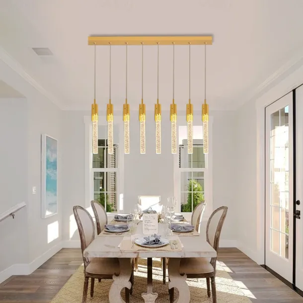 LED Pendant Light Dimmable 1/2/4/5/8 Head Crystal Modern Kitchen Island Light Fixture,Adjustable Pendant Lighting for Kitchen Island,Black Gold Led Chandelier for Dining Room,Bedroom,Mini Pendant Spot Lights (1-Pack)