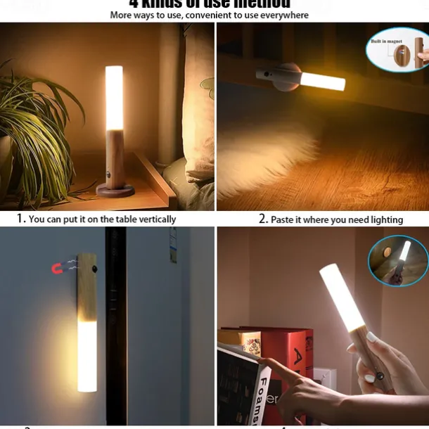 LED PIR Human Motion Sensor Wall Lamp USB Wood Stick Move Night Light Magnetic Corridor Cabinet Wardrobe Light Home Decor Light
