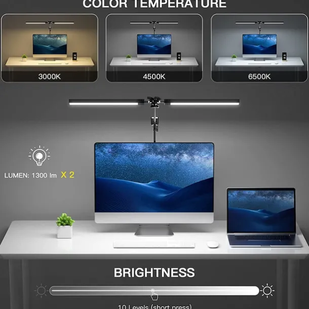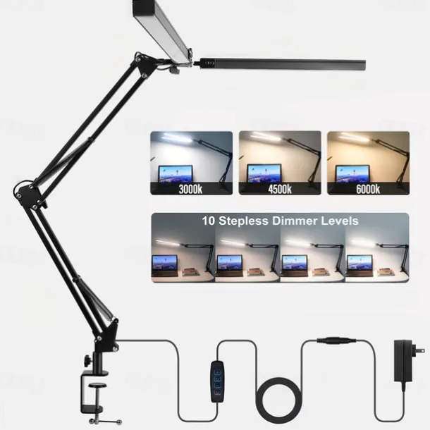 LED Reading Desk Lamp 24W Folding Swing Arm Desk Lamp with Clamp Dimmable Suitable for Workbench Home Eye Care Office Study Shustar