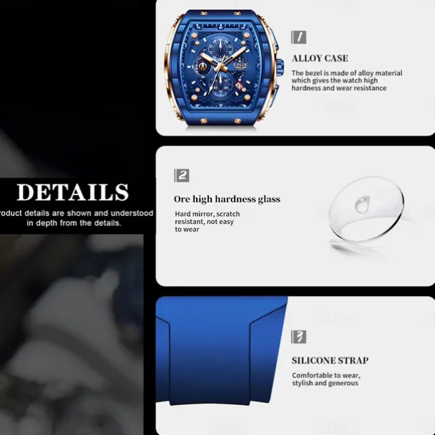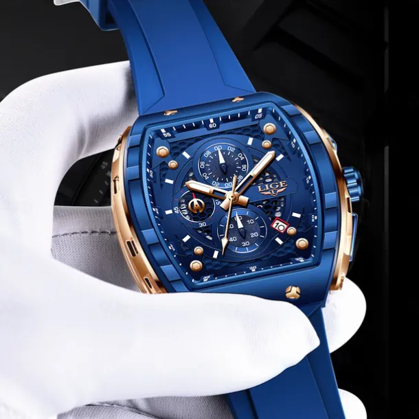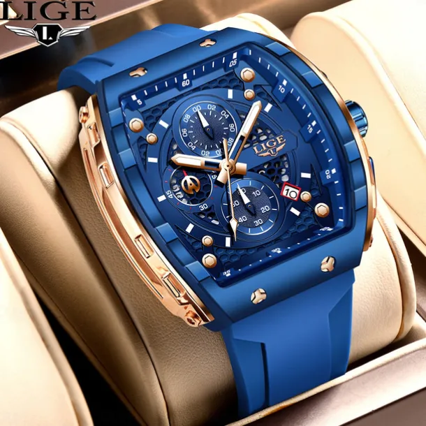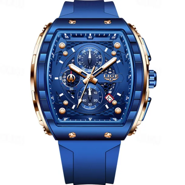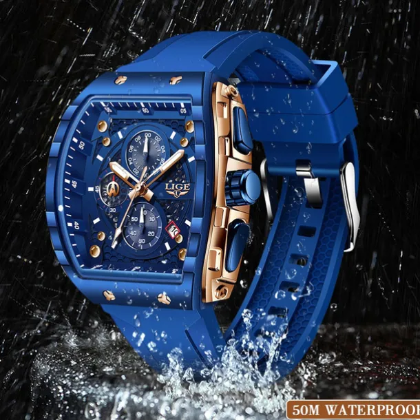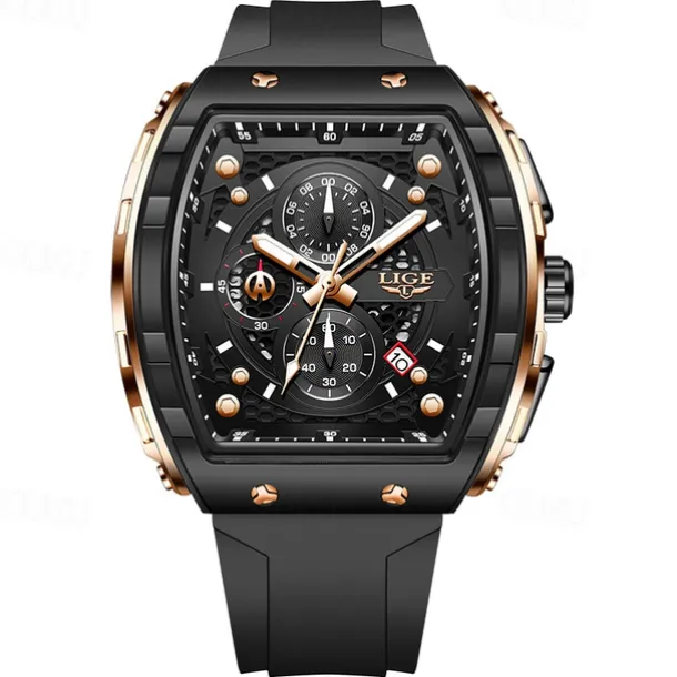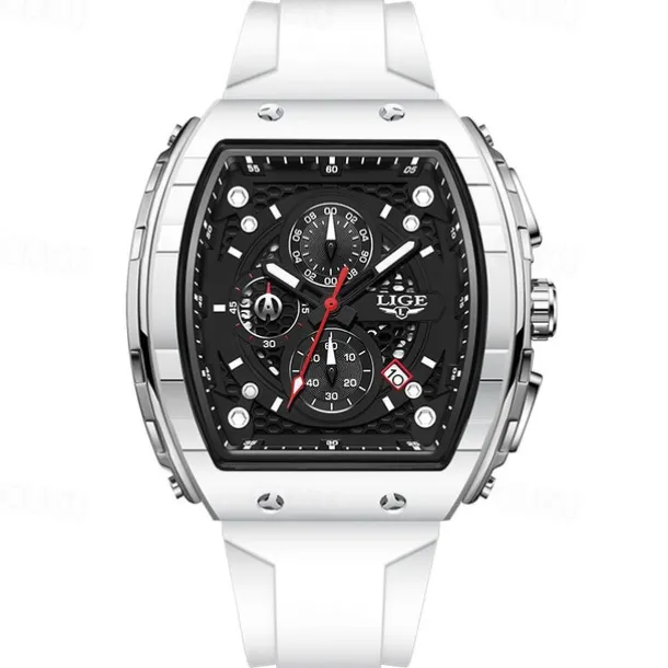 LIGE Men Quartz Watch Sports Business Calendar Waterproof Plastic Silicone Strap Watch