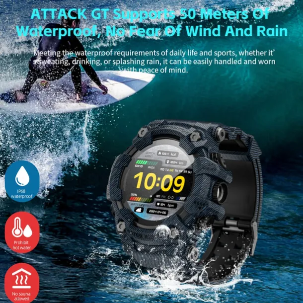 LOKMAT ATTACK GT Smart Watch 1.32 inch Smartwatch Fitness Running Watch Bluetooth Pedometer Call Reminder Sleep Tracker Compatible with Android iOS Women Men Long Standby Hands-Free Calls Waterproof