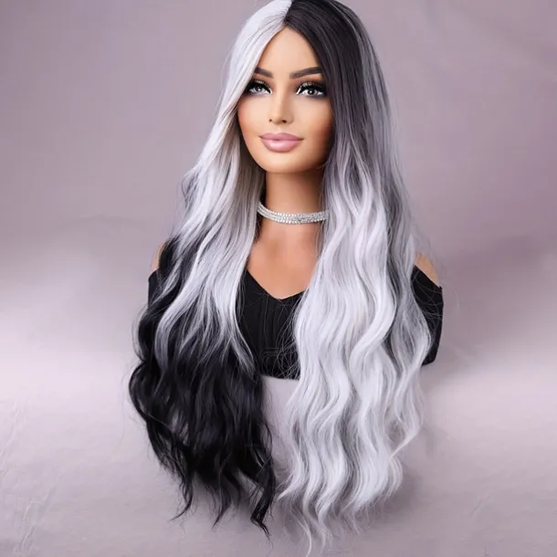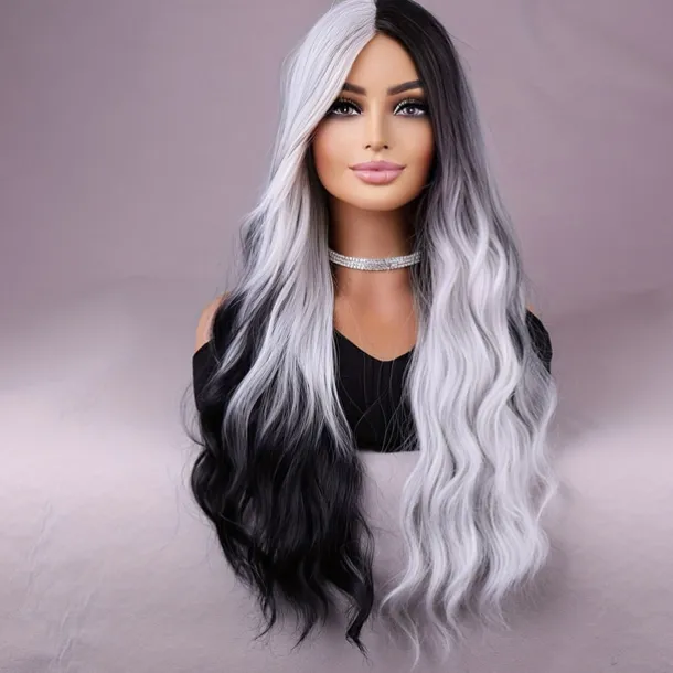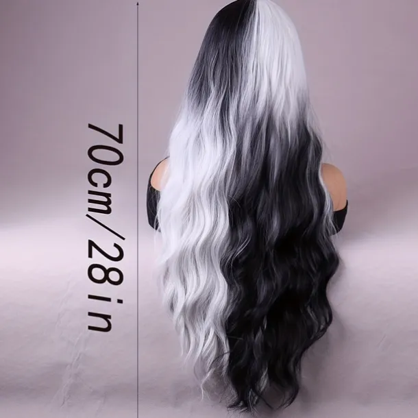 Long Black And White Double Wig A White Wig With Heat Resistant Synthetic Hair In The Middle Part Of A Cosplay Party Wig