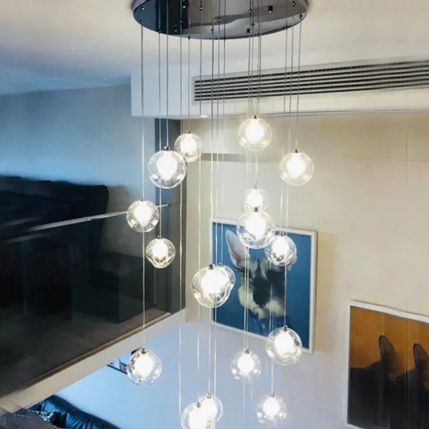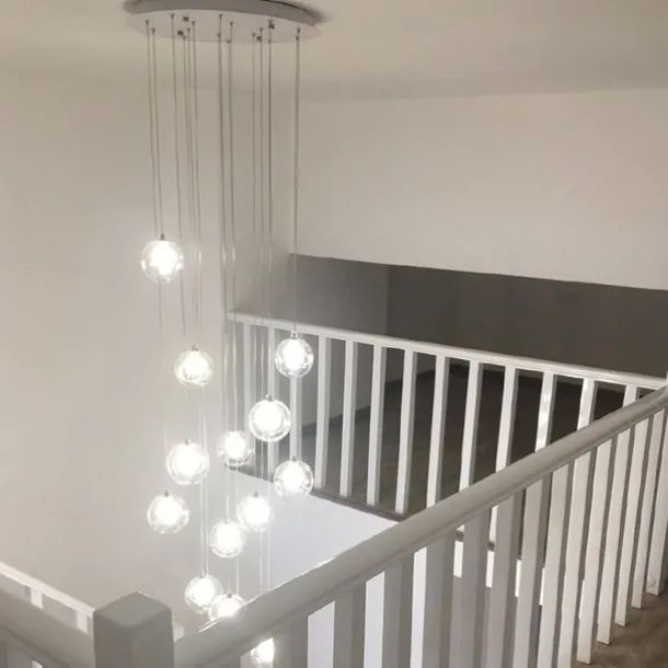 Long Chandeliers for High Ceilings,Modern Crystal Balls Pendant Light,Globe Raindrop Drop Lamp,Hanging Flush Mount Lighting Fixtures for Spiral Staircase,Foyer,Entrywa