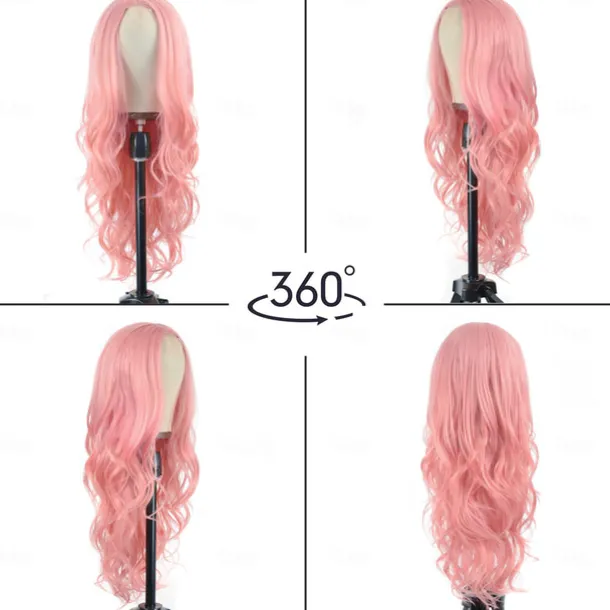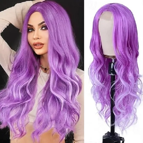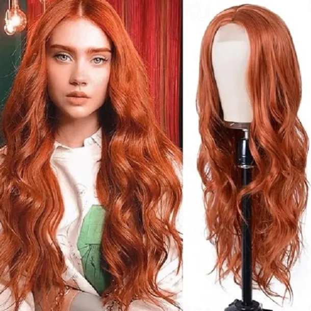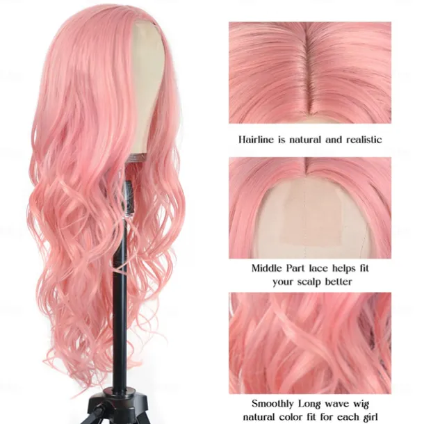 Long Wavy Wig for Women Middle Part Long Curly Wavy Wig Heat Resistant Synthetic Hair Looking Natural Fiber Wig Halloween Cosplay Party Wigs