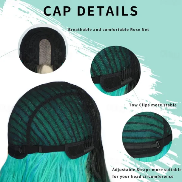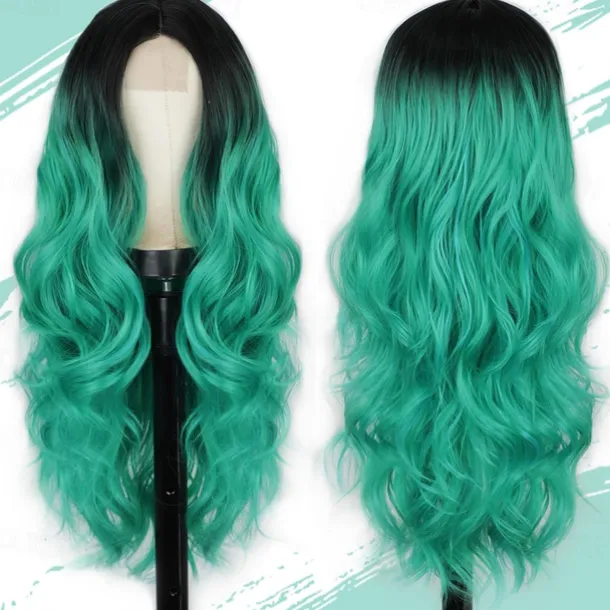 Long Wavy Wig for Women Ombre Green Middle Part Wigs Teal Wigs Long Curly Synthetic Heat Resistant Hair with Natural Hairline for Cosplay Party Everyday Use St.Patrick’s Day Wigs