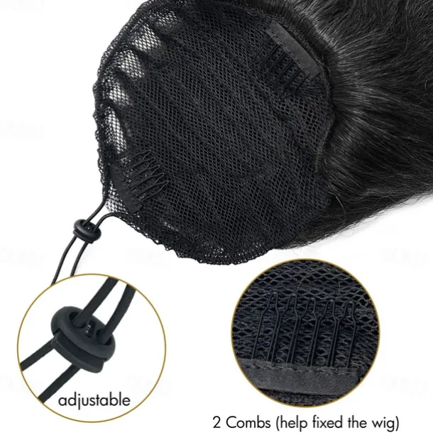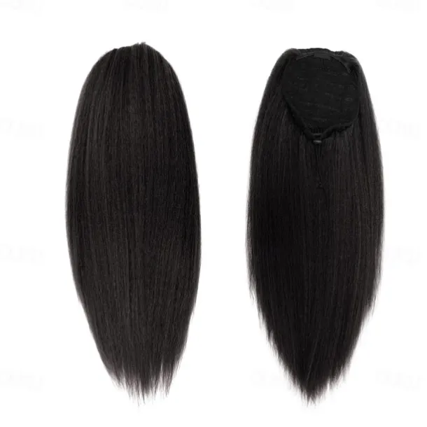 Long Yaki Straight Drawstring Pony Tail Hair Attachments for Women Black Kinky Straight Up Down Ponytail Bun Extension 20 inch Clip in