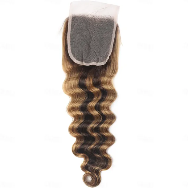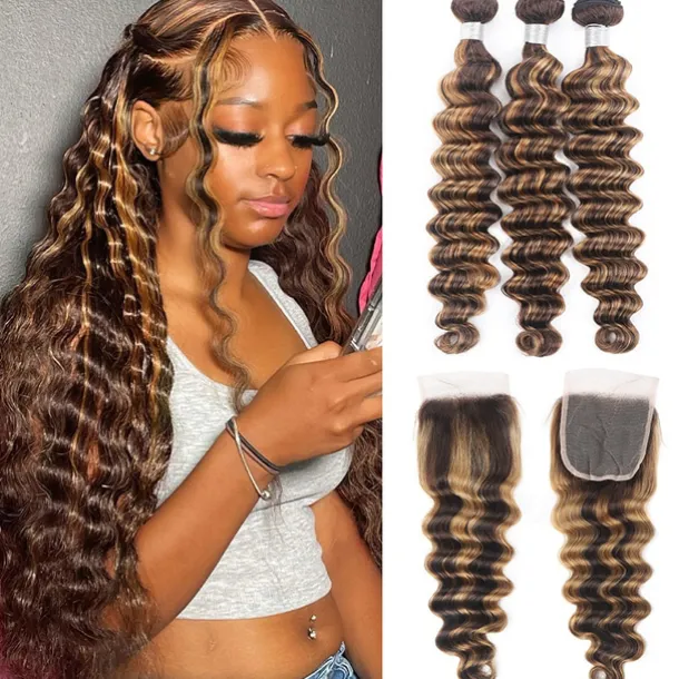 Loose Deep 3&1 Bundles With Closure Highlight P4/27# Human Hair Weaving With 4*4 Closures Pre-colored Brazilian Hair Extension