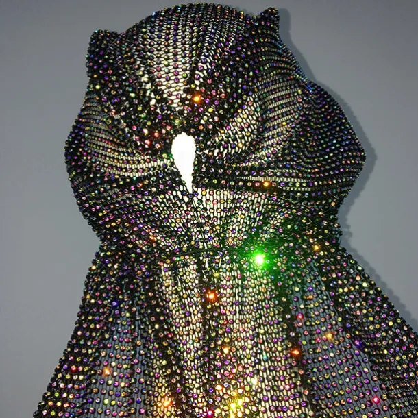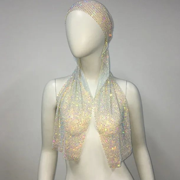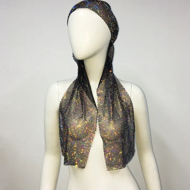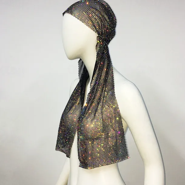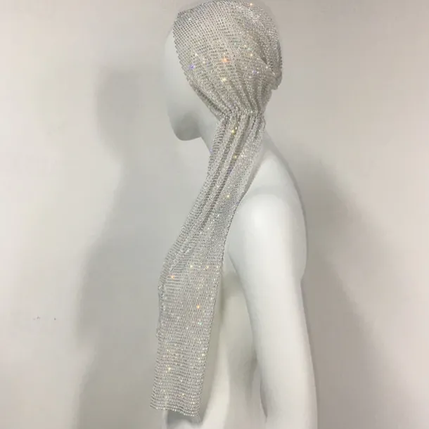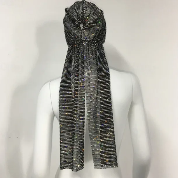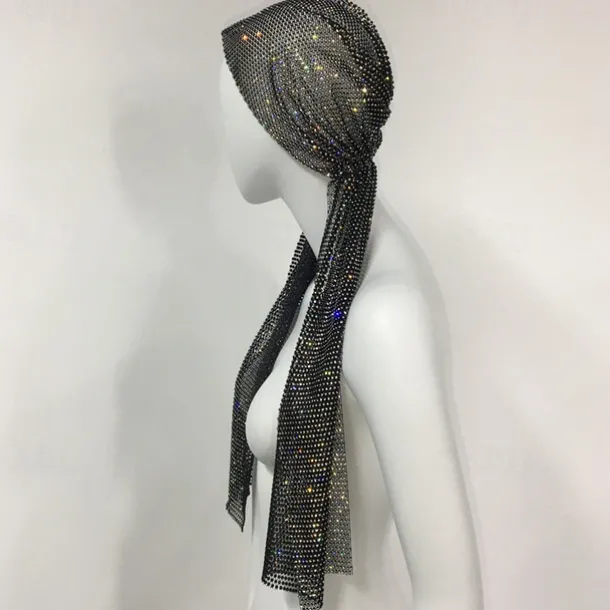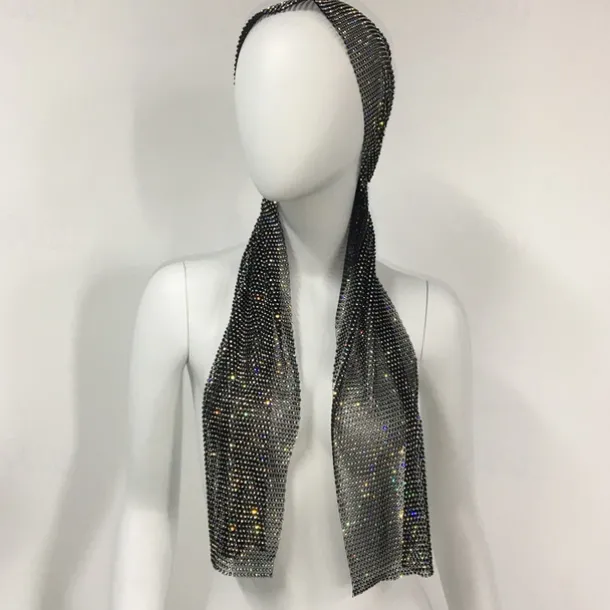 Luxurious Wide Mesh Rhinestone Headband – Elastic Crystals Turban Head Wrap with Sparkling Accents – Perfect for Women in Nightclub, Rave Party