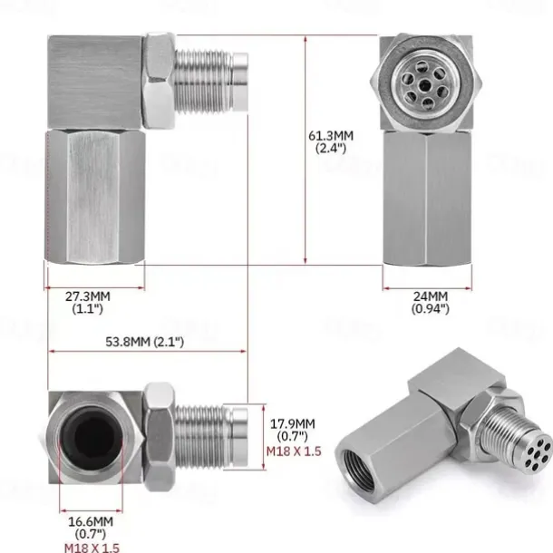 M18*1.5 Exhaust Catalyst Rear Oxygen Sensor Spacer 90 Degree Mini Catalyst Lambda O2 Adapter CEL Fix