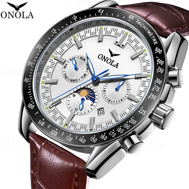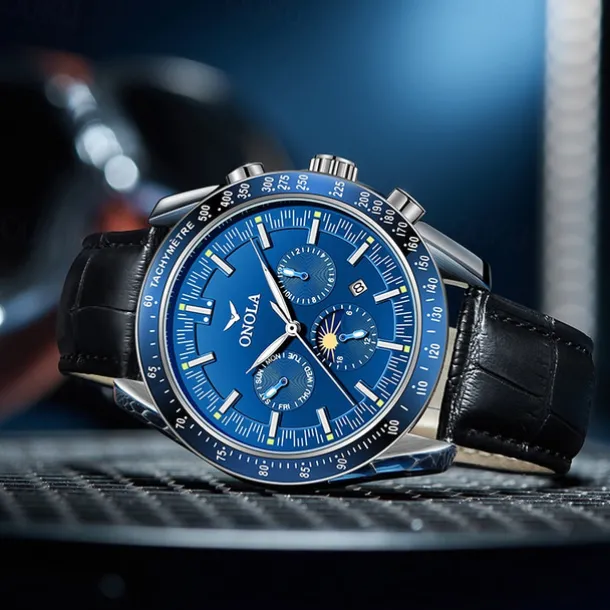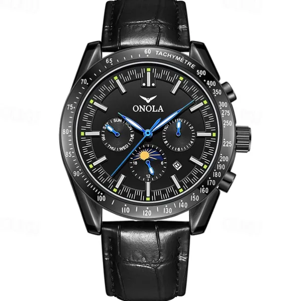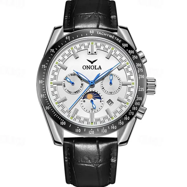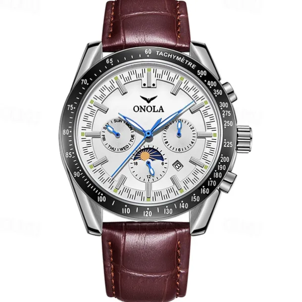 Men Mechanical Watch Fashion Business Wristwatch Automatic Self-winding Tourbillon Moon phase Luminous Leather Watch