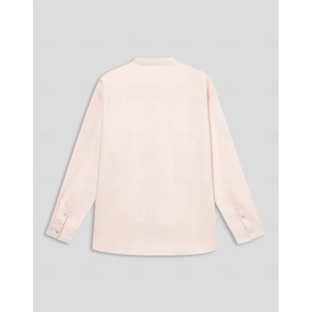 Men’s 100% Linen Shirt Button Up Shirt White Pink Long Sleeve Plain Standing Collar Spring & Fall Outdoor Daily Clothing Apparel Ruched
