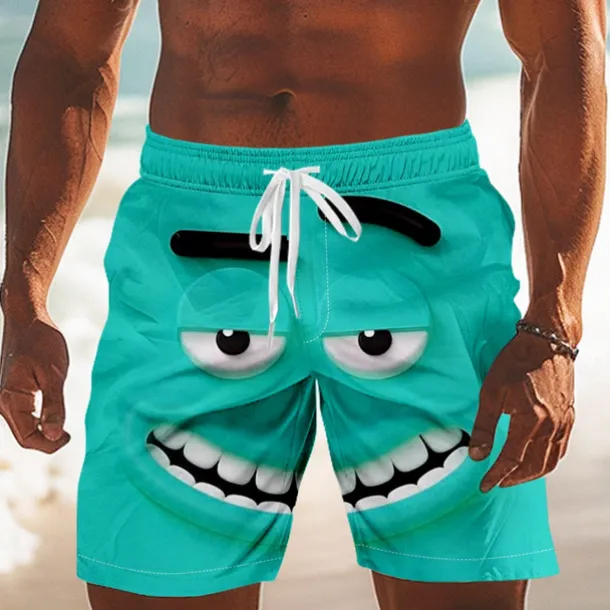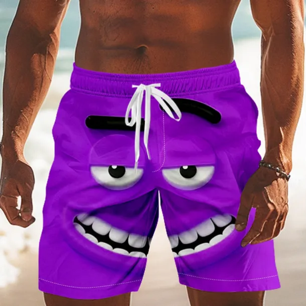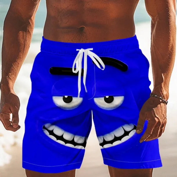 Men’s 3D Cartoon Smile Face Swim Trunks Swim Shorts Board Shorts Mid Waist Funny Outdoor Vacation Dailywear Side Pockets Mesh Lining Elastic Drawstring Waist Designer Clothing Apparel