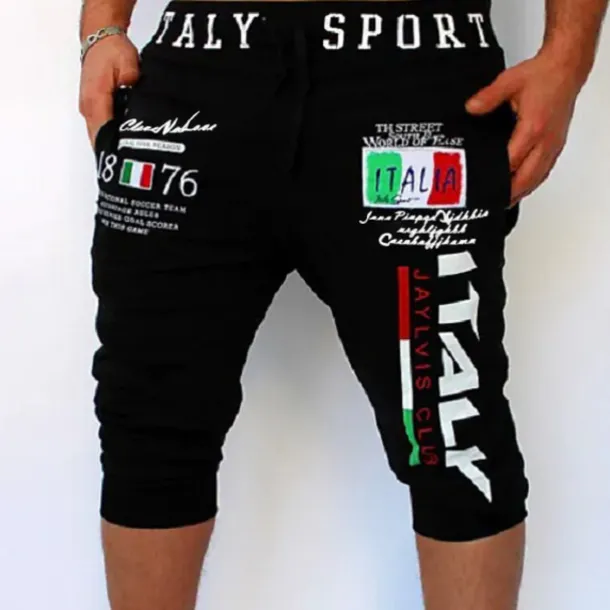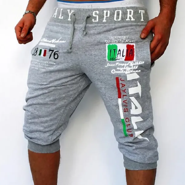 Men’s Athletic Pants Sweatpants Capri Pants Drawstring Print Letter Sports Outdoor Weekend Streetwear Stylish Black White Micro-elastic