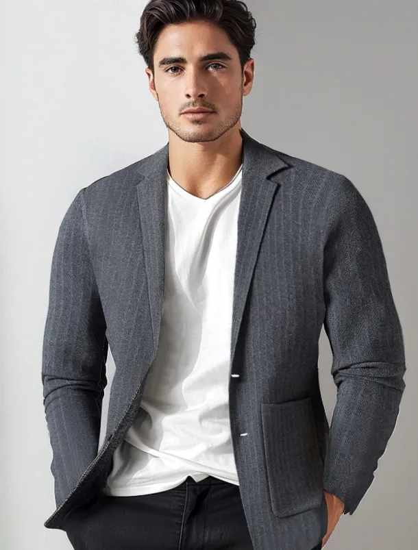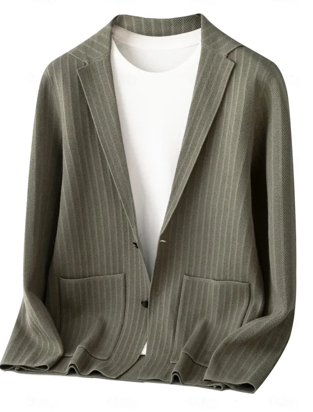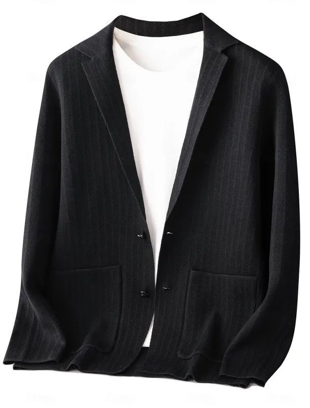 Men’s Blazer Jacket Sweater Coat School Formal Wedding Elegant Warm Spring Fall Wool Nylon Solid Color Jacquard Multiple Pockets Comfy Single Breasted Two-button Blazer Black Dark Grey Army Green