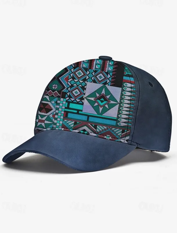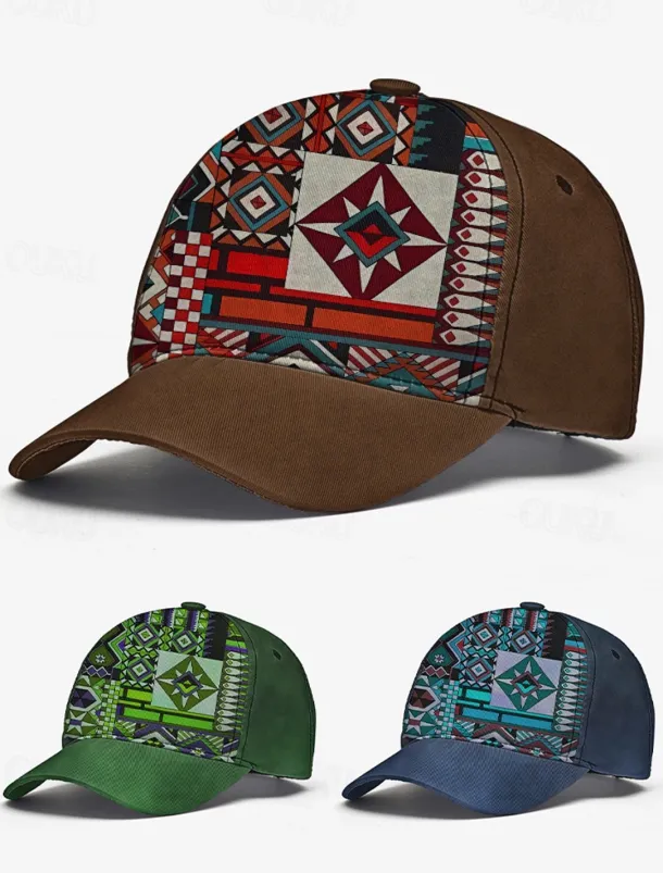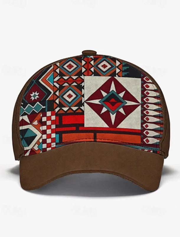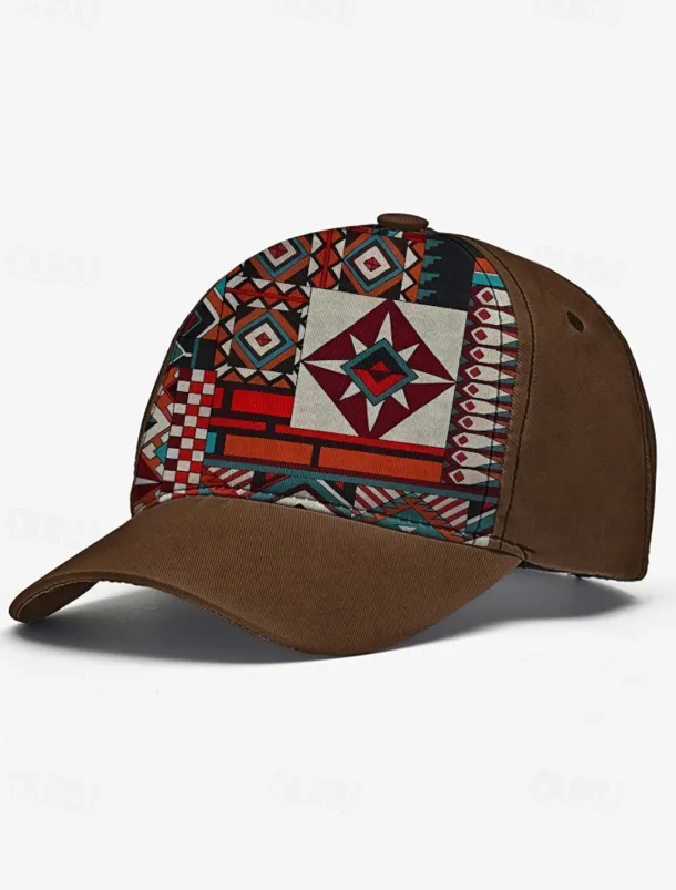 Men’s Brown Baseball Cap with Colorful Tribal Print – Adjustable Casual Hat for Outdoor Activities and Festivals