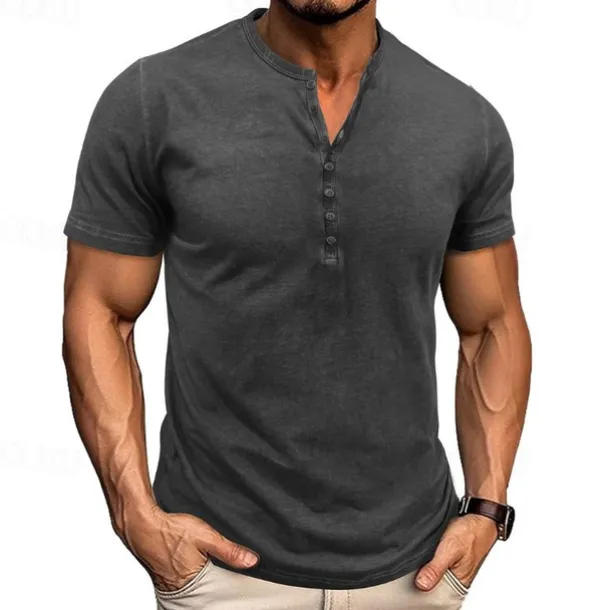 – Stay cool and comfortable all summer long in our 100% cotton Henley shirt