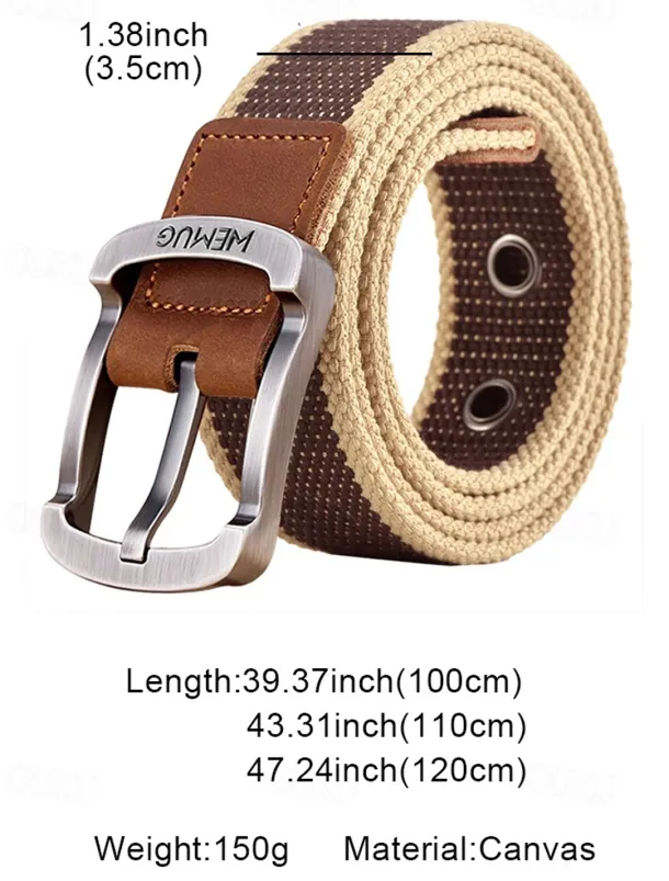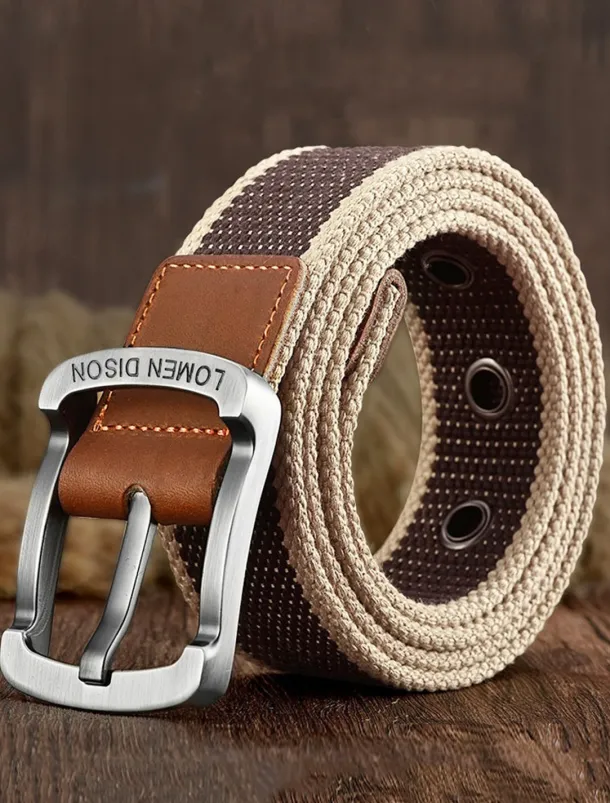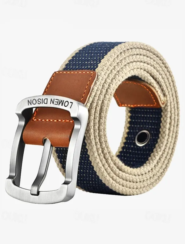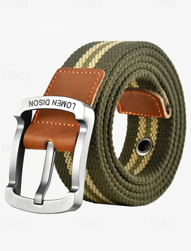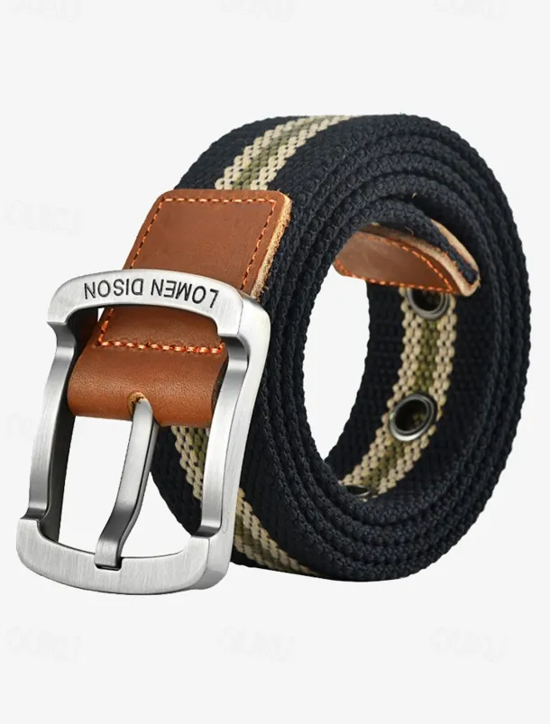 Men’s Canvas Belt with Leather Buckle – Durable Woven Belt with Double Eyelets and Metal Buckle, Casual Style for Everyday Wear