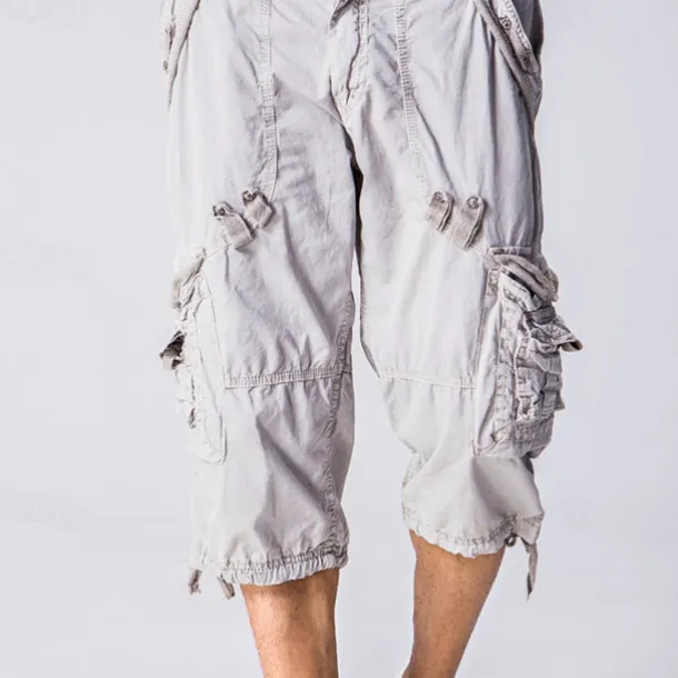 Men’s Capri Cargo Shorts Cargo Shorts Capri Pants Shorts Summer Shorts Multi Pocket Flap Pocket Plain Comfort Wearable Knee Length Outdoor Sport Daily Fashion Casual Army Green Red