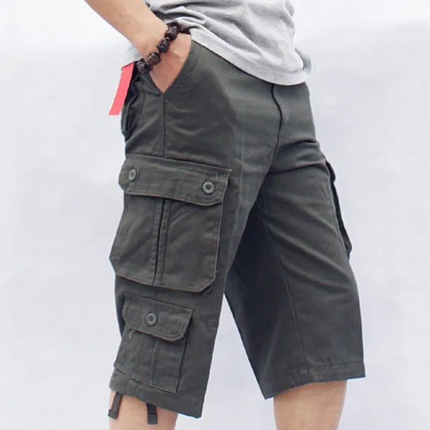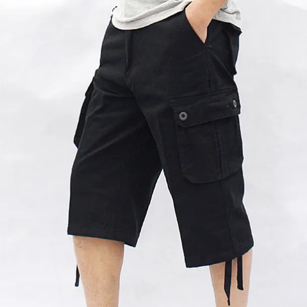 Men’s Capri Cargo Shorts Leg Drawstring Multi Pocket Plain Calf-Length Streetwear Classic Style Black Army Green