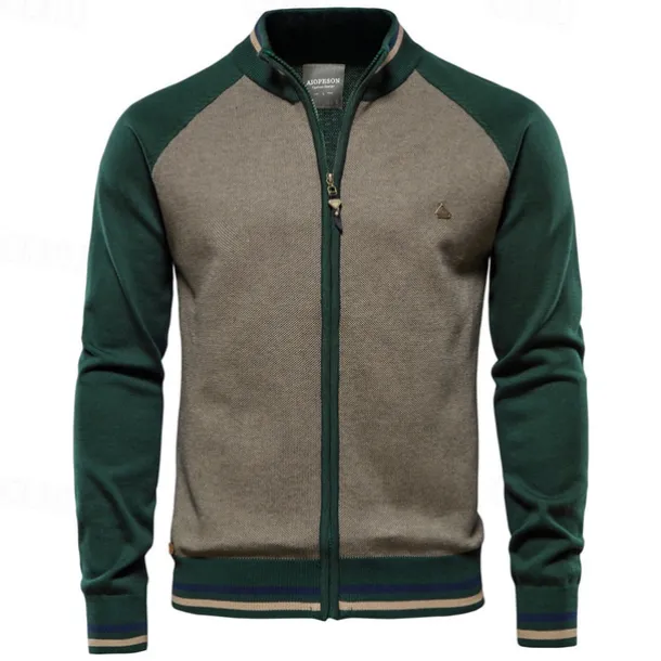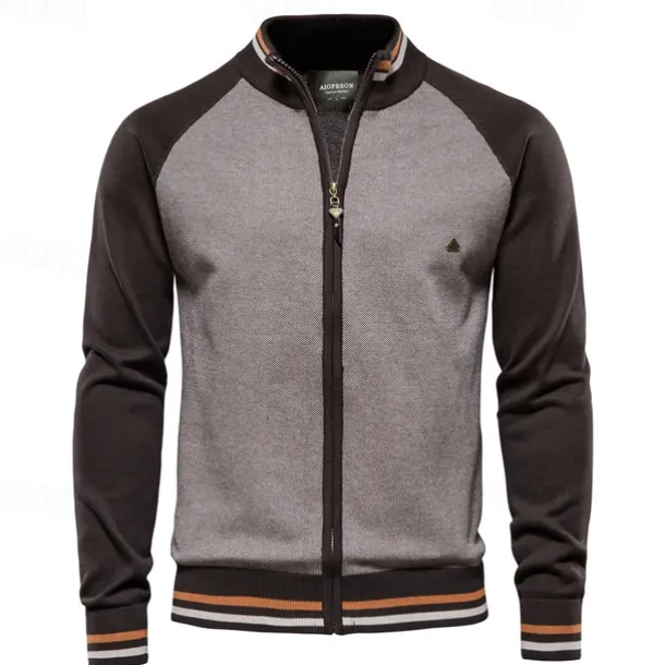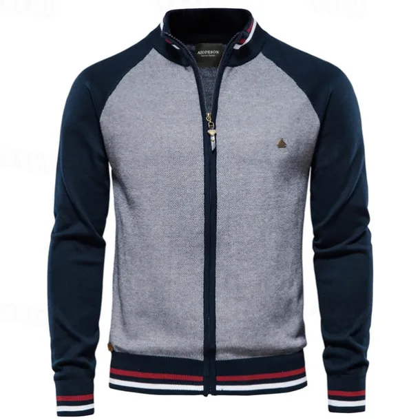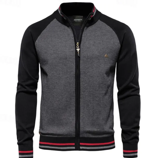 Men’s Cardigan Sweater Cardigan Ribbed Knit Regular Tops Zipper Color Block Standing Collar Knitwear Neutral Outdoor Clothing Apparel Spring & Fall Black Navy Blue S M L