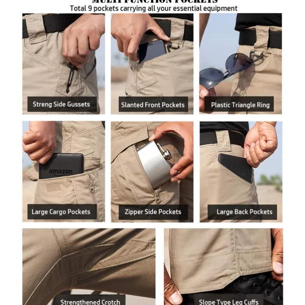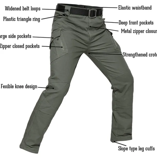 – Designed specifically for men, these multi-pocket tactical pants offer a military and work-appropriate style that includes quick-dry and zipper pocket features.