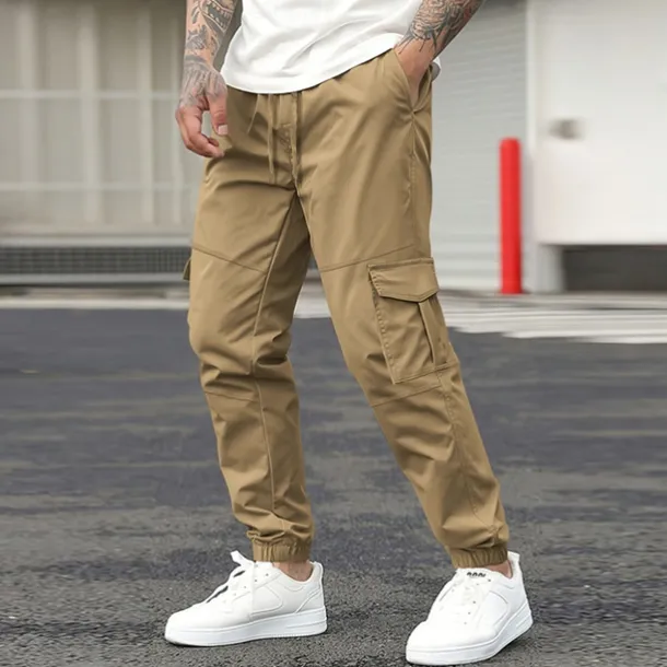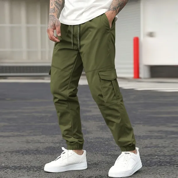 Men’s Cargo Pants Cargo Trousers Joggers Trousers Casual Pants Pocket Drawstring Elastic Waist Plain Comfort Soft Full Length Outdoor Casual Daily Fashion Streetwear Black Green