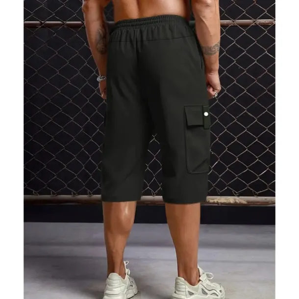 Men’s Cargo Shorts Summer Shorts Capri shorts Drawstring Elastic Waist Multi Pocket Plain Comfort Wearable Calf-Length Outdoor Sport Daily Fashion Casual Black Khaki