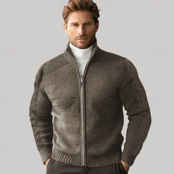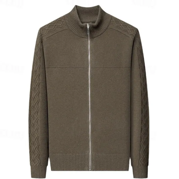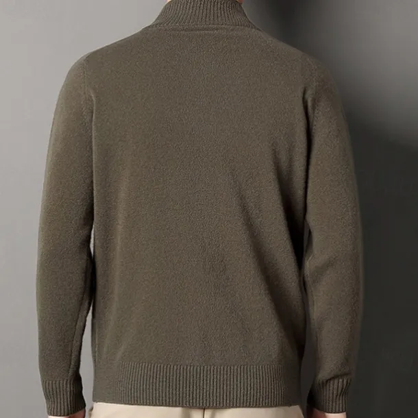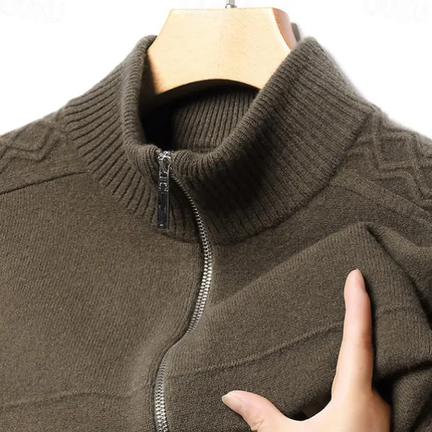 Men’s Cashmere Zip Sweater Knit Solid Color Turtleneck Christmas Knitwear School Christmas Clothing Apparel Fall Winter Black Brown S M L