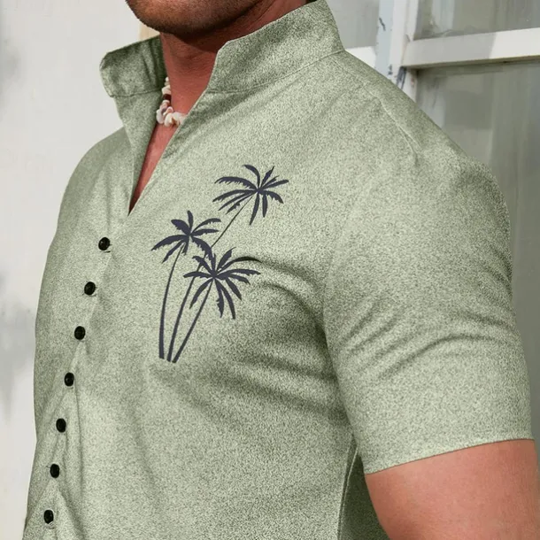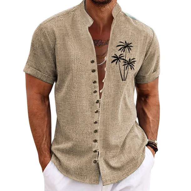 Celebrate Summer and Spring with our limited edition men’s linen shirt featuring fantastic coconut tree graphic prints and a stylish stand collar It is machine washable perfect for daily casual wear or outdoor adventures This unique piece hand dyed and designed in collaboration with Streetwear Designer Casual is as unique as you are!