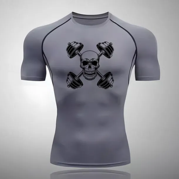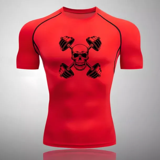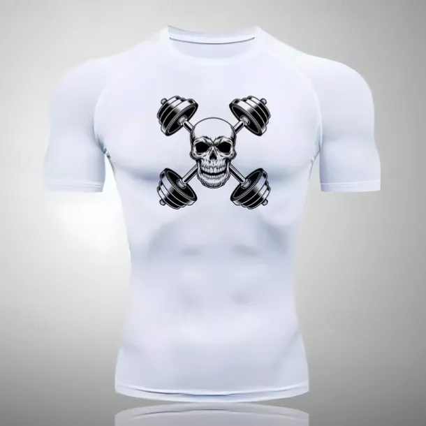 Men’s Compression Shirt Athletic Shirt Gym Shirt Fitness Shirt Short Sleeve Tee Tshirt Casual Athleisure Breathable Quick Dry Soft Gym Workout Running Walking Sportswear Activewear Skull White Red