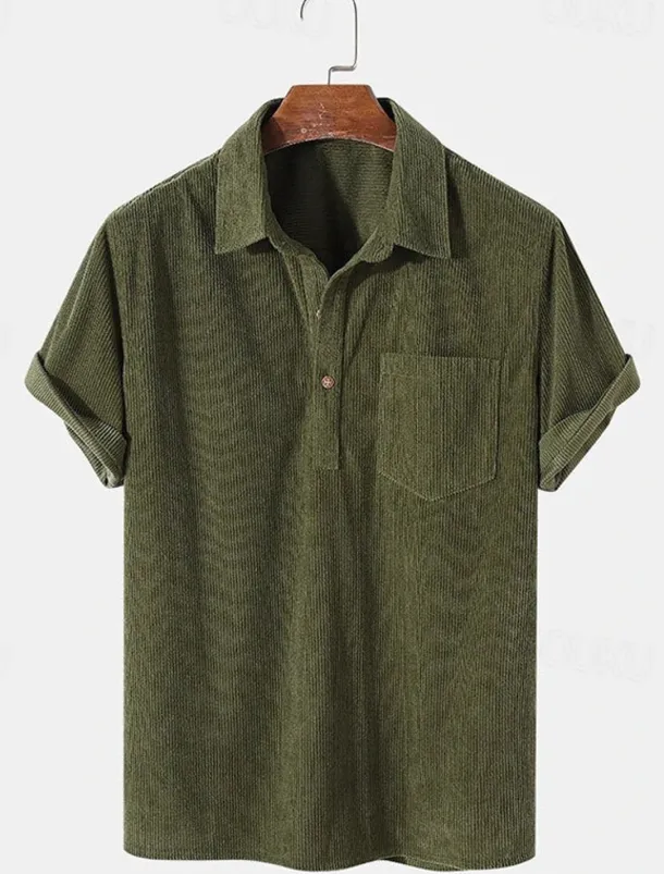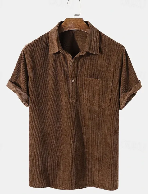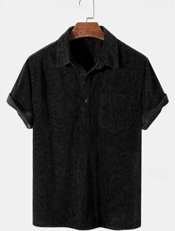 – Designed with a classic lapel neckline and button detail, this shirt is perfect for men looking for a basic and versatile style.