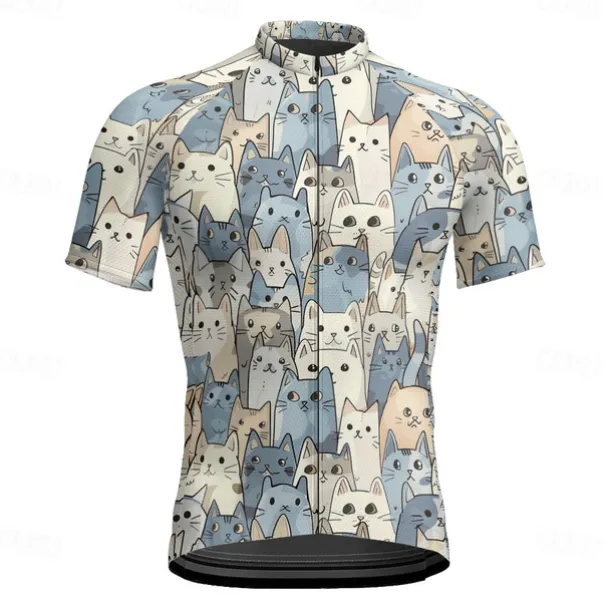 Men’s Cycling Jersey Cat Short Sleeve Bike Tee Tshirt Jersey with 3 Rear Pockets Mountain Bike MTB Quick Dry Anatomic Design Wicking Breathable Sports Navy Blue Royal Blue Blue Clothing Apparel