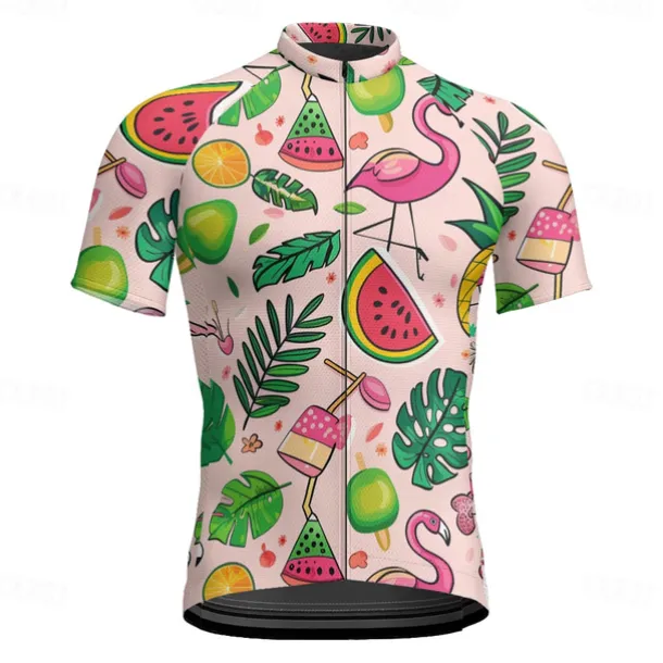 Men’s Cycling Jersey Fruit Short Sleeve Bike Tee Tshirt Jersey with 3 Rear Pockets Mountain Bike MTB Quick Dry Anatomic Design Wicking Breathable Sports Pink Clothing Apparel
