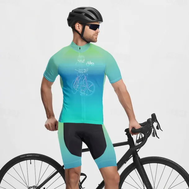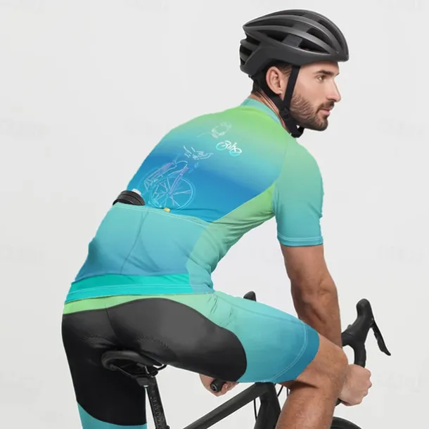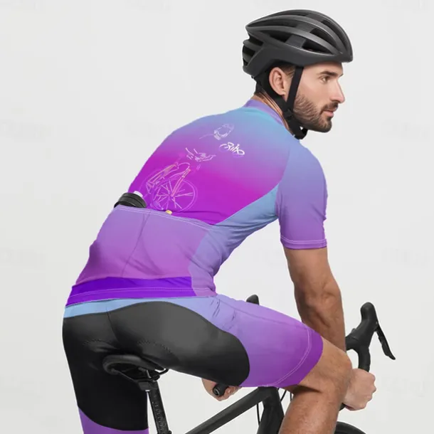 Men’s Cycling Jersey Gradient Short Sleeve Bike Tee Tshirt Jersey with 3 Rear Pockets Mountain Bike MTB Quick Dry Anatomic Design Wicking Breathable Sports Blue Purple Green Clothing Apparel