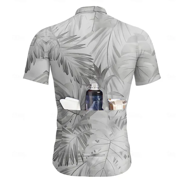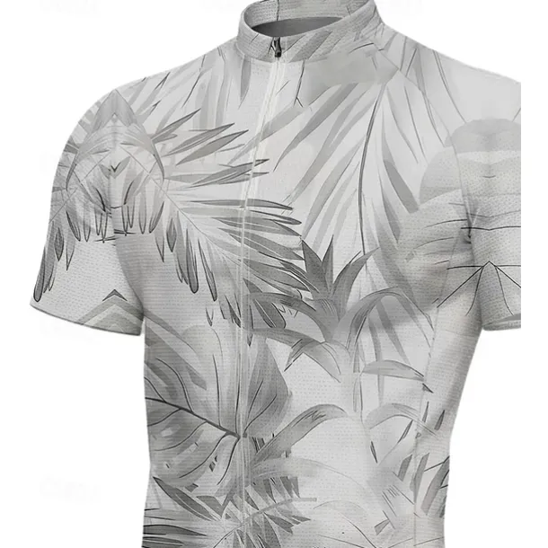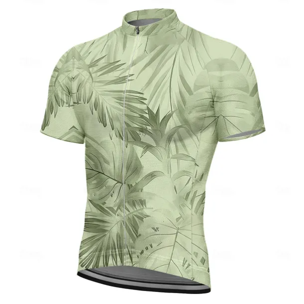 Men’s Cycling Jersey Graphic Leaf Plants Short Sleeve Bike Tee Tshirt Top with 3 Rear Pockets UV Resistant Quick Dry Front Zipper Reflective Strips Sports Blue Green Grey Clothing Apparel