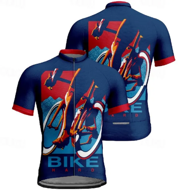 Men’s Cycling Jersey Graphic Short Sleeve Bike Tee Tshirt Jersey with 3 Rear Pockets Mountain Bike MTB Quick Dry Anatomic Design Wicking Breathable Sports Navy Blue Blue Clothing Apparel