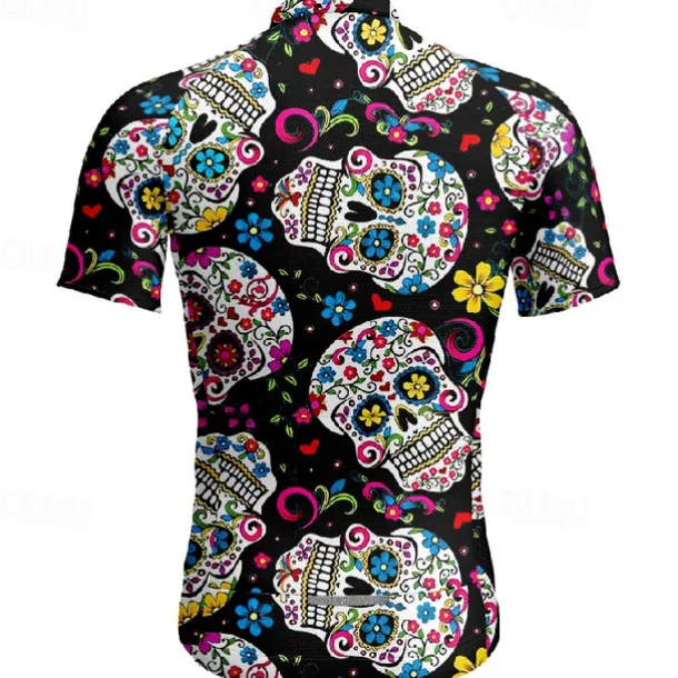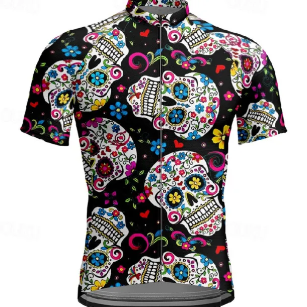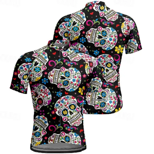 Men’s Cycling Jersey Skull Short Sleeve Bike Tee Tshirt Jersey with 3 Rear Pockets Mountain Bike MTB Quick Dry Anatomic Design Wicking Breathable Sports Black Clothing Apparel