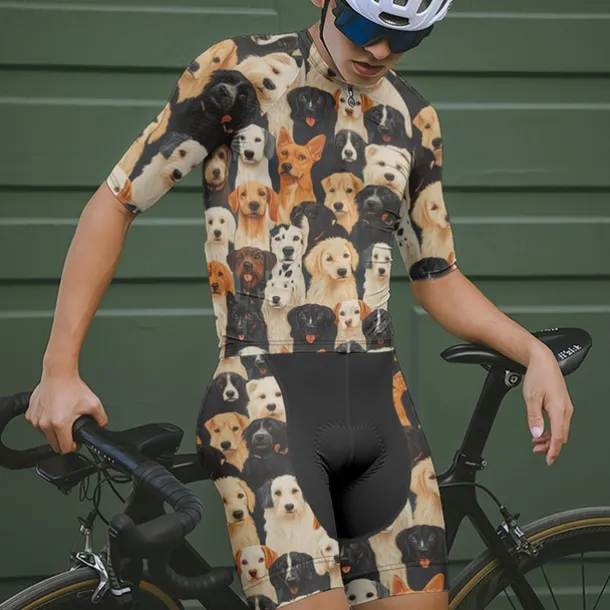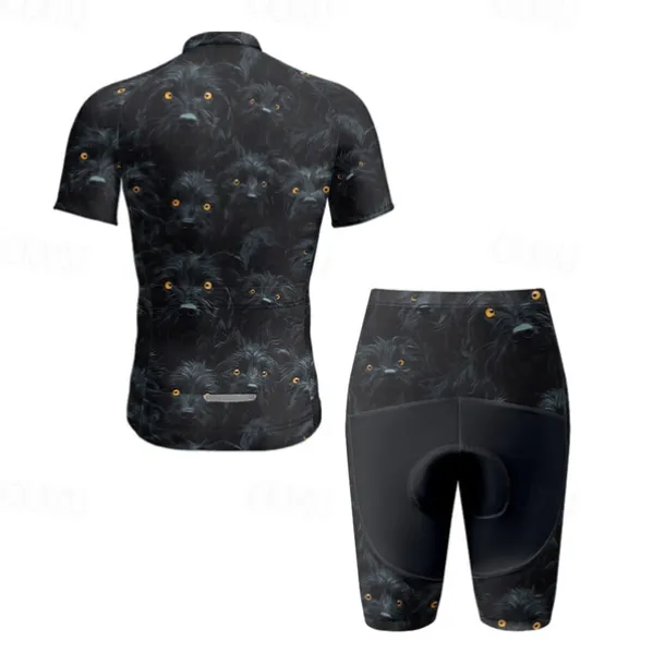 Men’s Cycling Jersey with Shorts Dog Short Sleeve Bike Clothing Suit with 3 Rear Pockets Mountain Bike MTB Road Bike Cycling Front Zipper Sweat wicking Comfortable Breathable Sports Black Yellow Dark