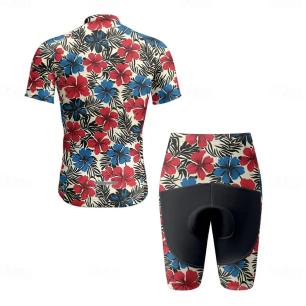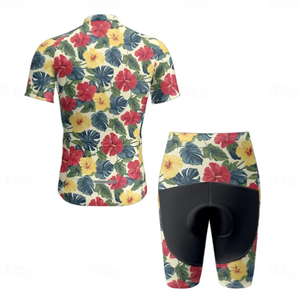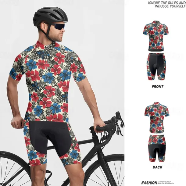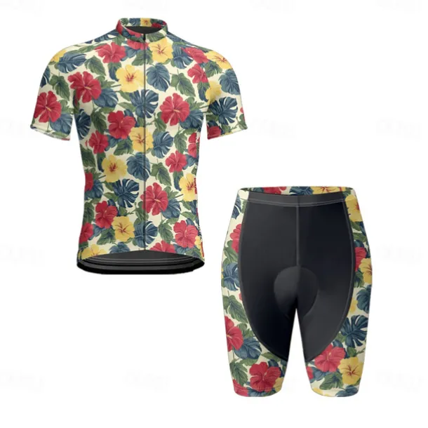 Men’s Cycling Jersey with Shorts Floral Botanical Short Sleeve Bike Clothing Suit with 3 Rear Pockets Mountain Bike MTB Road Bike Cycling Front Zipper Sweat wicking Comfortable Breathable Sports