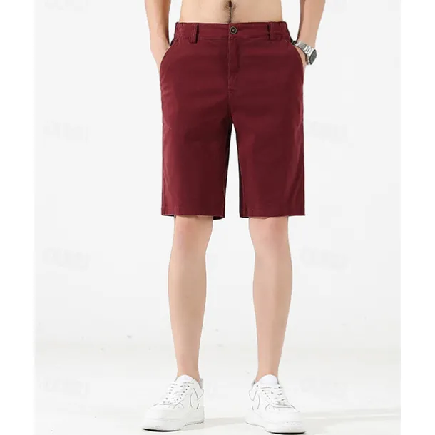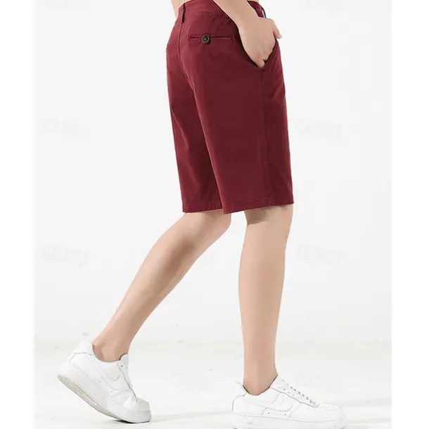 Men’s Dress Shorts Burmuda Shorts Work Shorts Ruched Pocket Plain Comfort Breathable Knee Length Outdoor Business Fashion Casual Black Wine