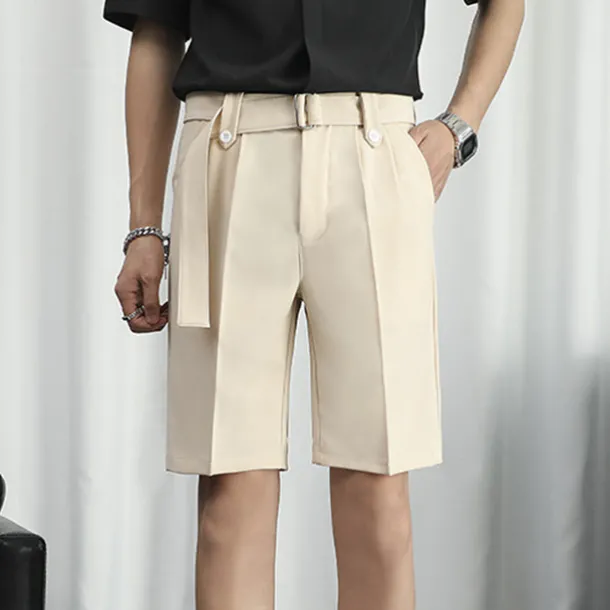 Men’s Dress Shorts Summer Shorts Bermuda shorts Work Shorts Pleated Plain Outdoor Going out Fashion Streetwear Black White Micro-elastic