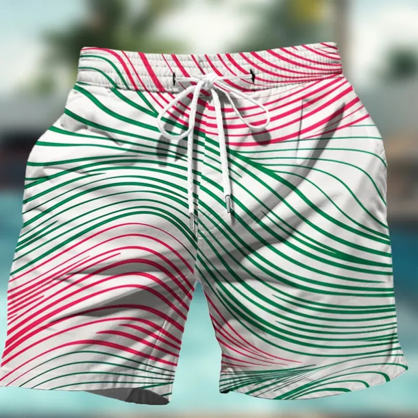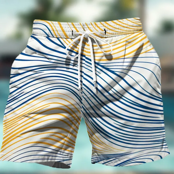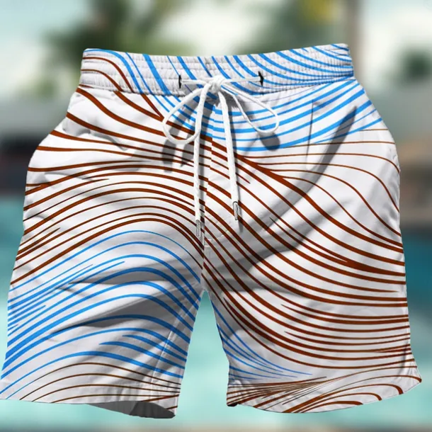 Men’s Geometric Pattern Colorful Line Swim Shorts Board Shorts Swimming Trunks Mid Waist Hawaiian Casual Holiday Beach Drawstring with Mesh lining Elastic Waist Designer Clothing Apparel